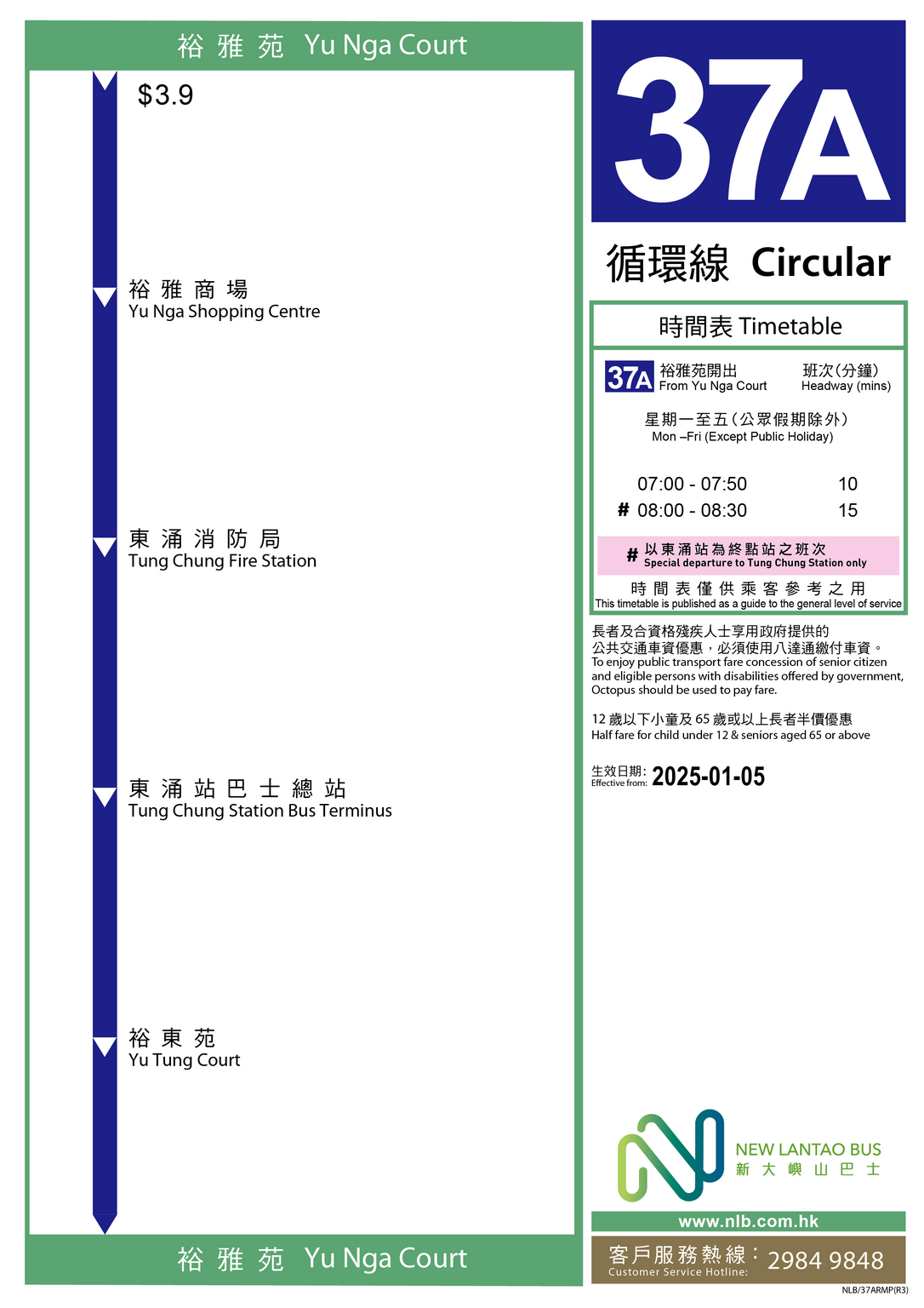 37A 裕雅苑 > 東涌站巴士總站 (循環線)