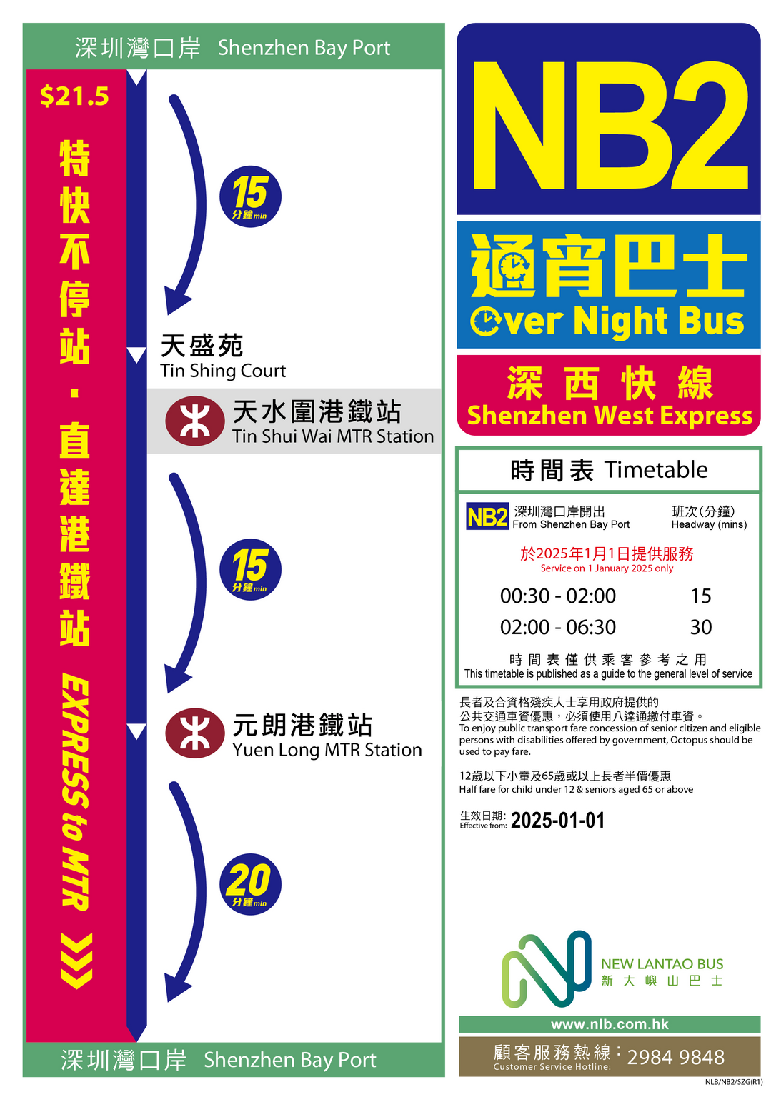 NB2 深圳灣口岸 > 元朗港鐵站 (循環線)