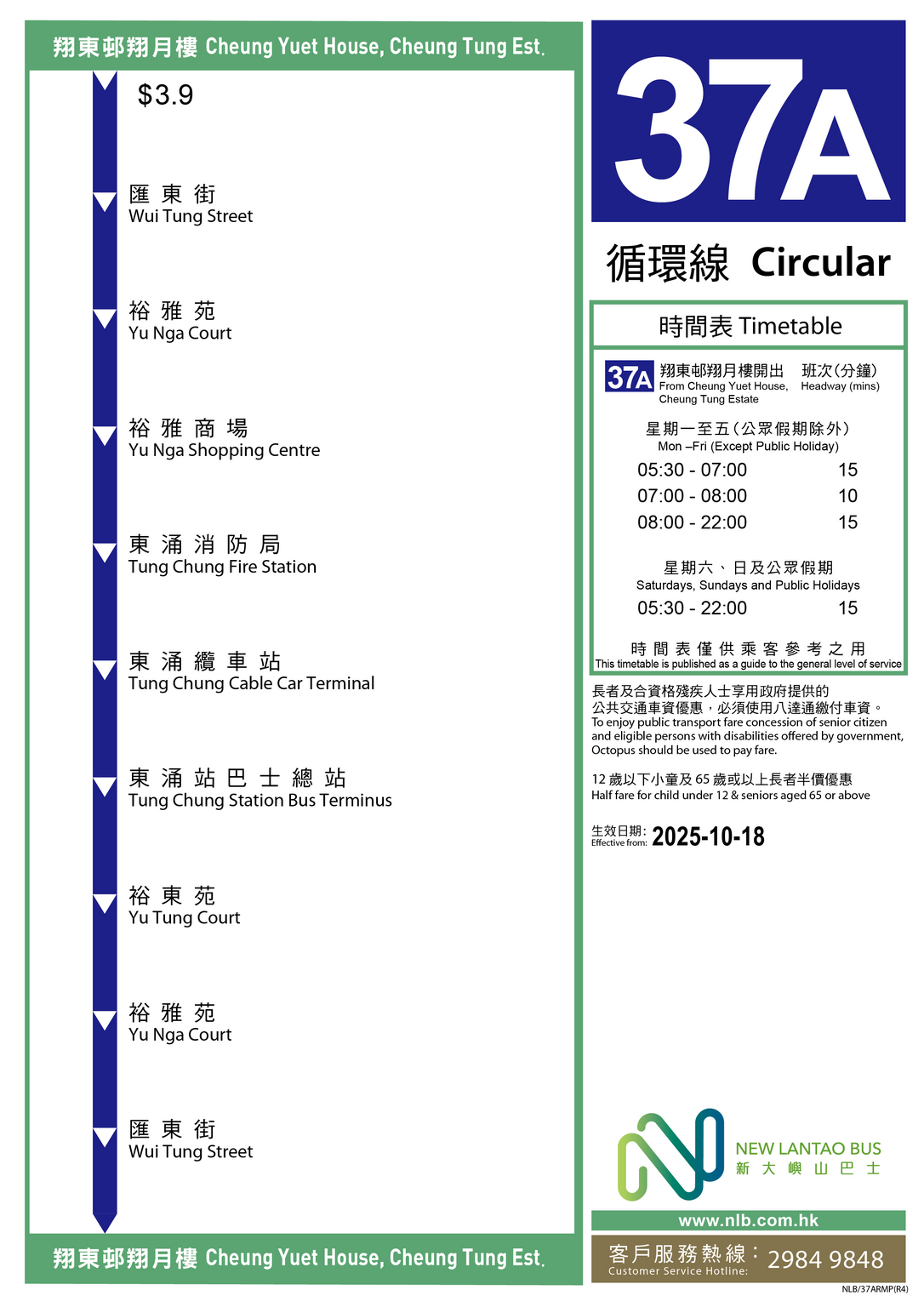 37A 翔東邨(翔月樓) > 東涌站巴士總站 (循環線)