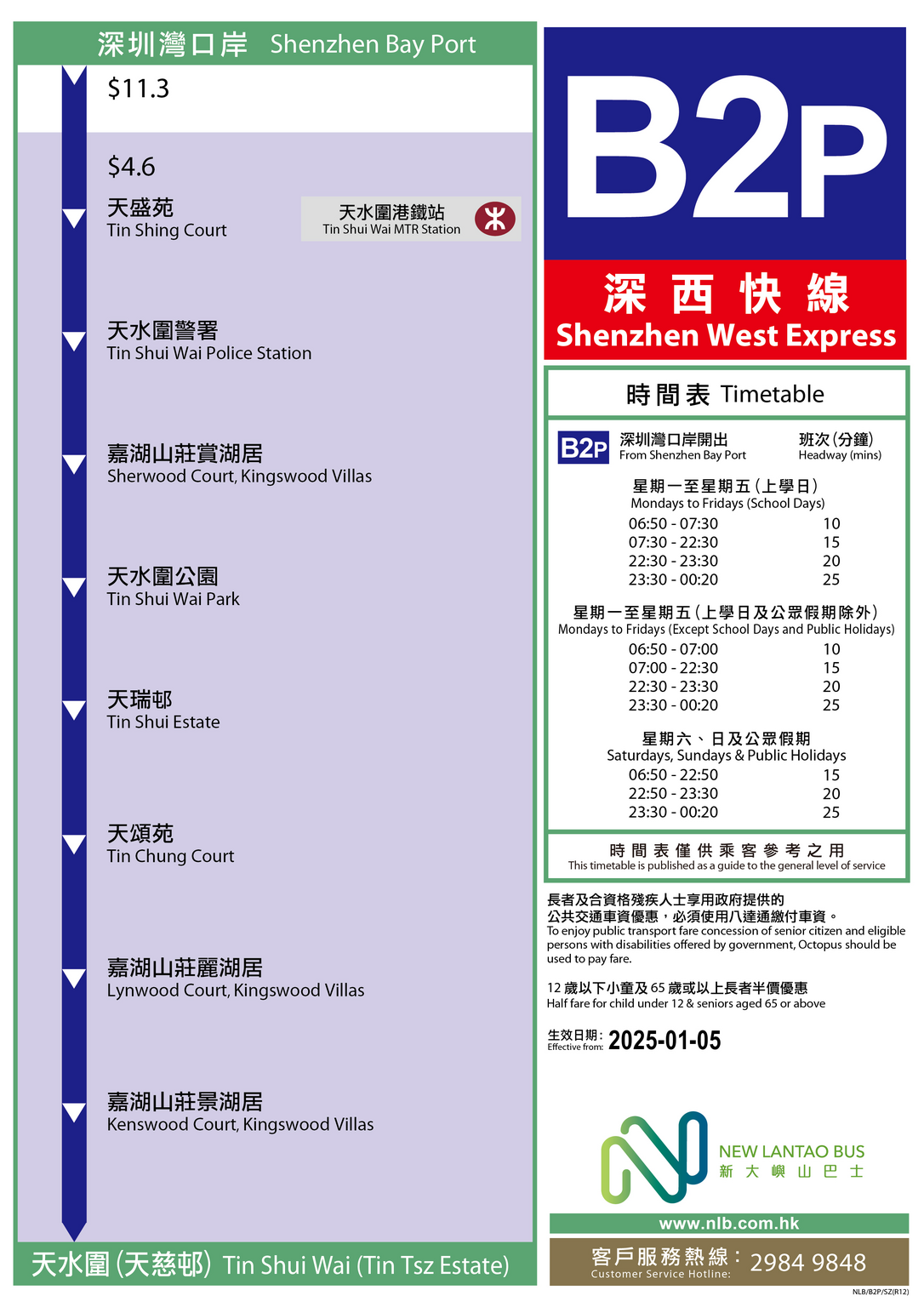 B2P 深圳灣口岸 > 天水圍 (天慈邨)