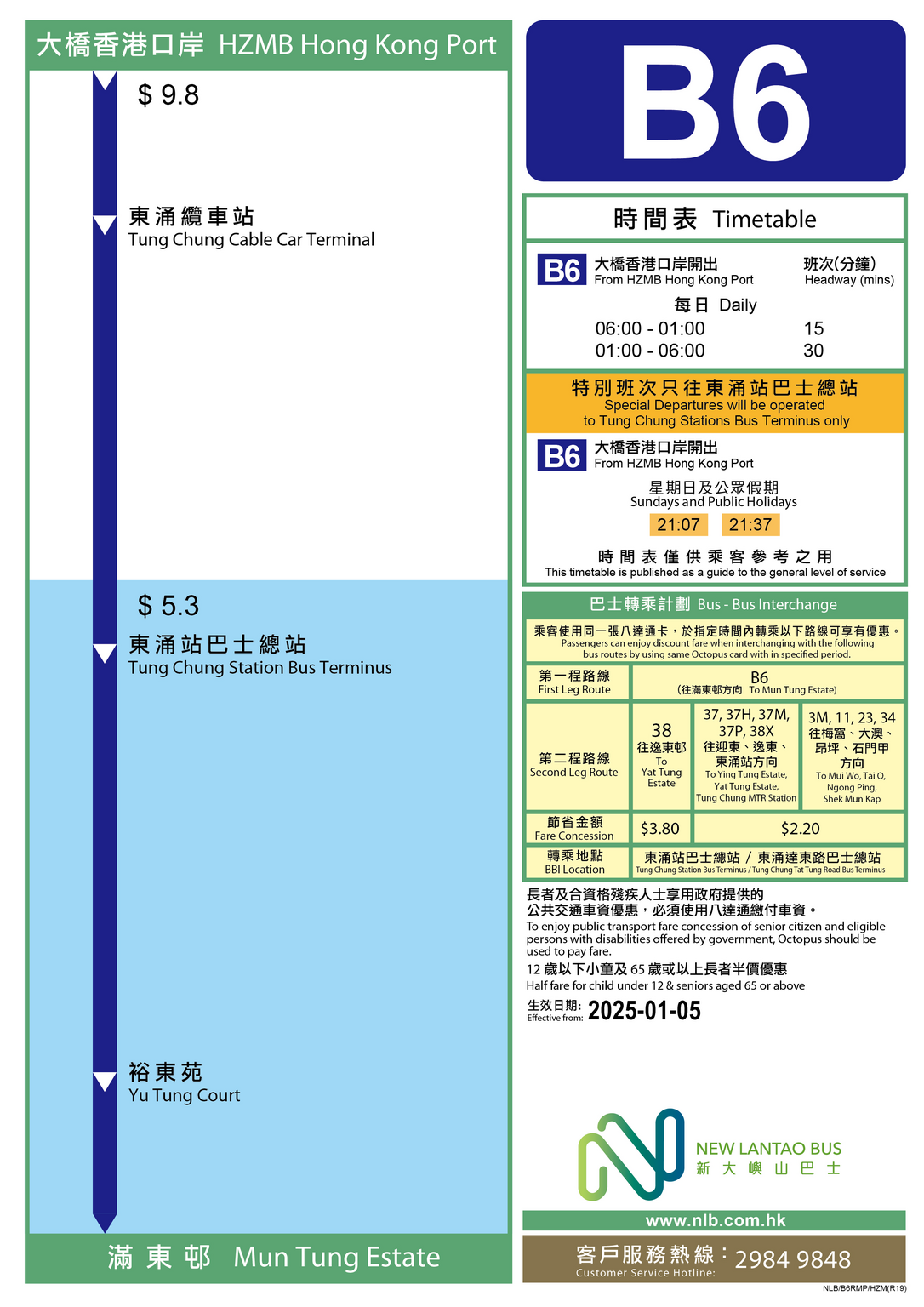 由大橋香港口岸開往東涌站巴士總站的特別班次: