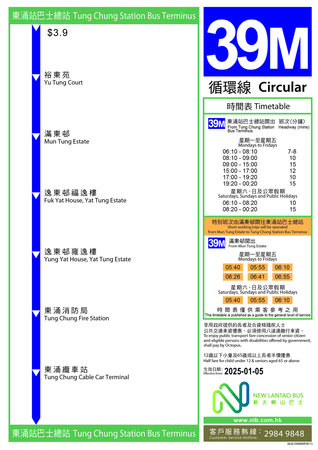 39M 東涌站巴士總站 > 滿東邨 (循環線)