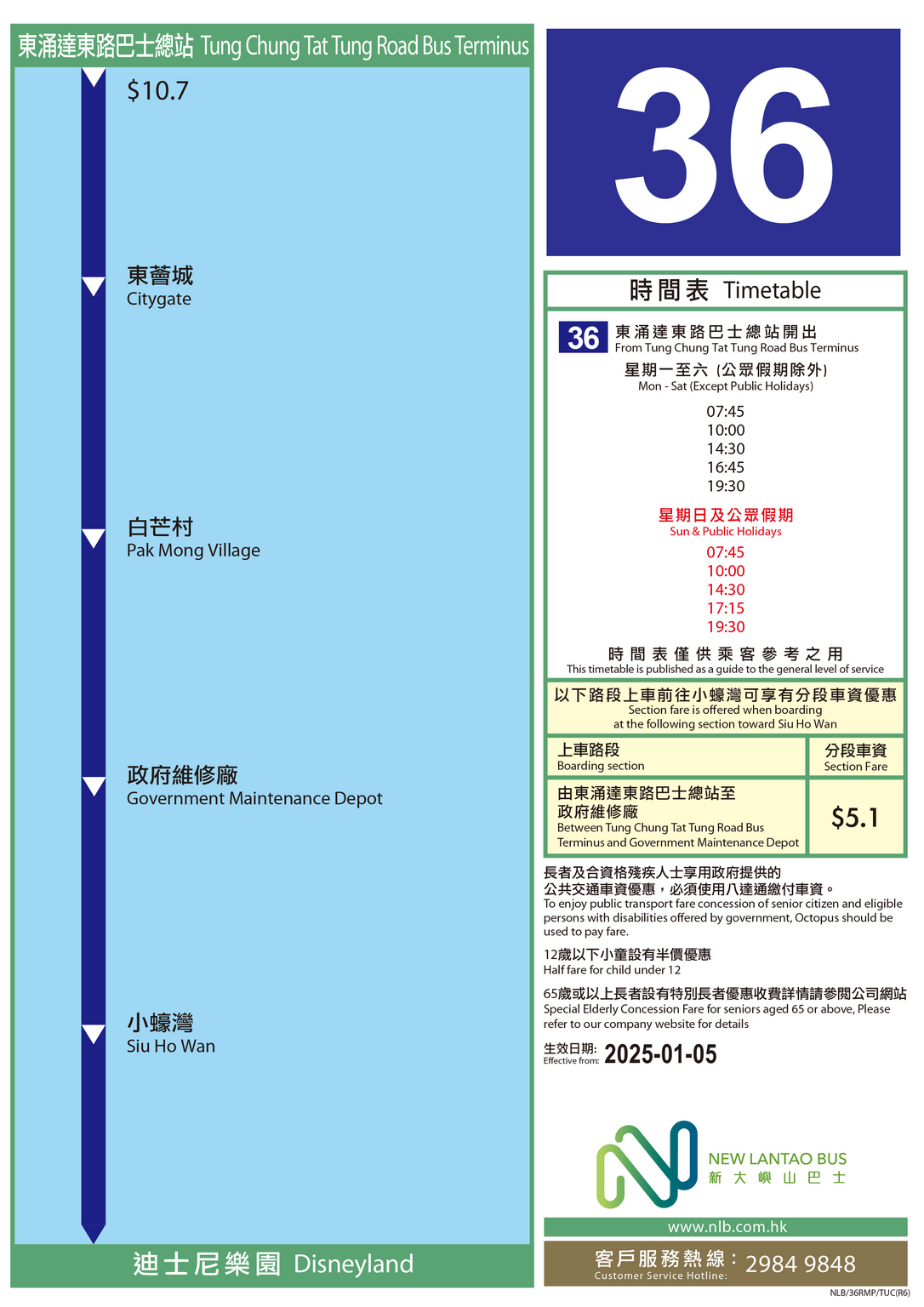 36 東涌達東路巴士總站 > 迪士尼樂園