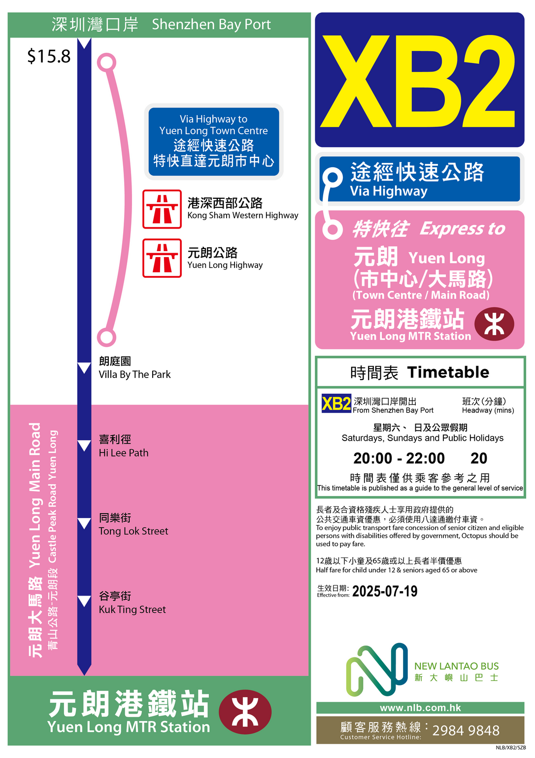 XB2 深圳灣口岸 > 元朗港鐵站(特快)