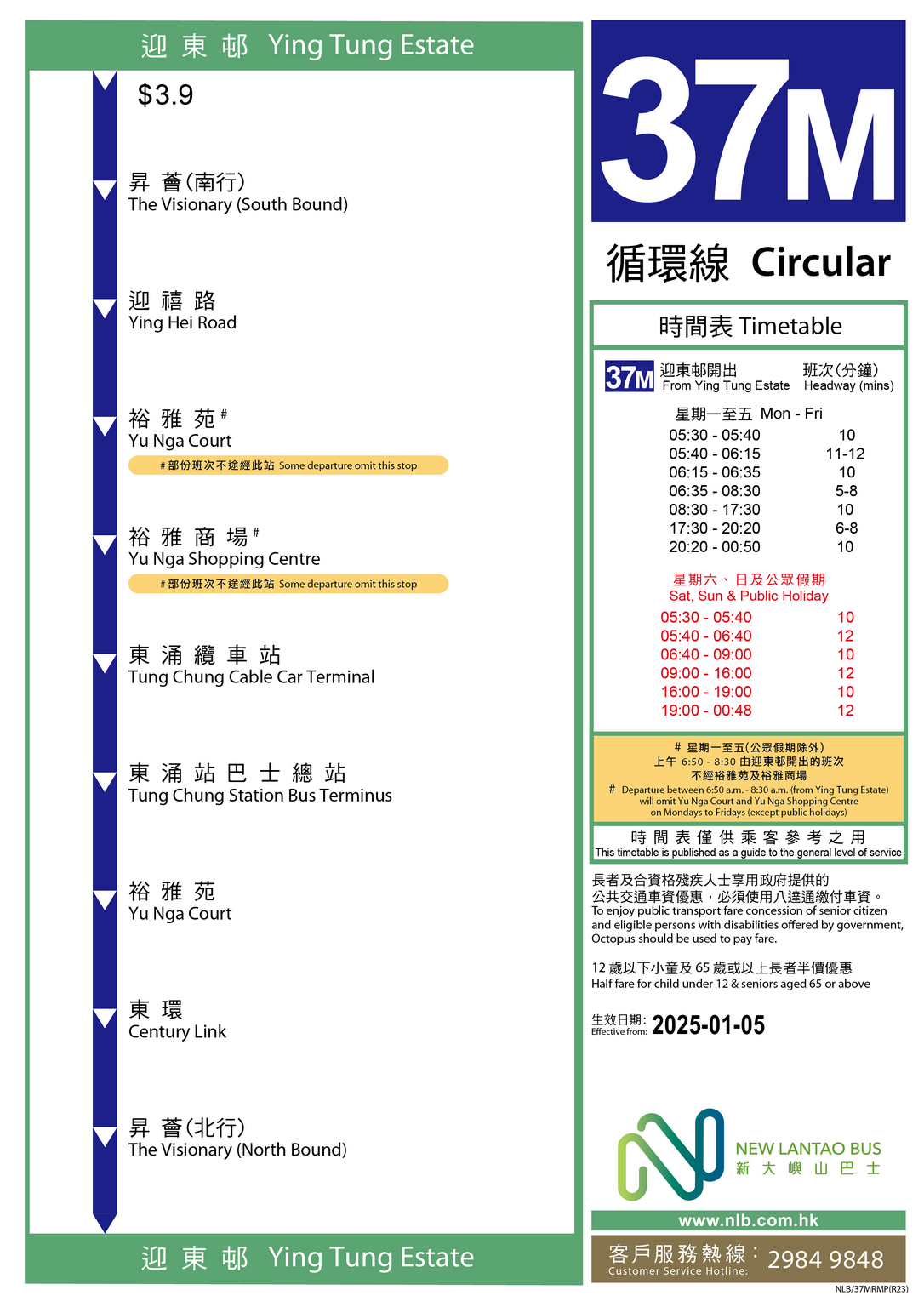 37M 迎東邨 > 東涌站巴士總站 (循環線)