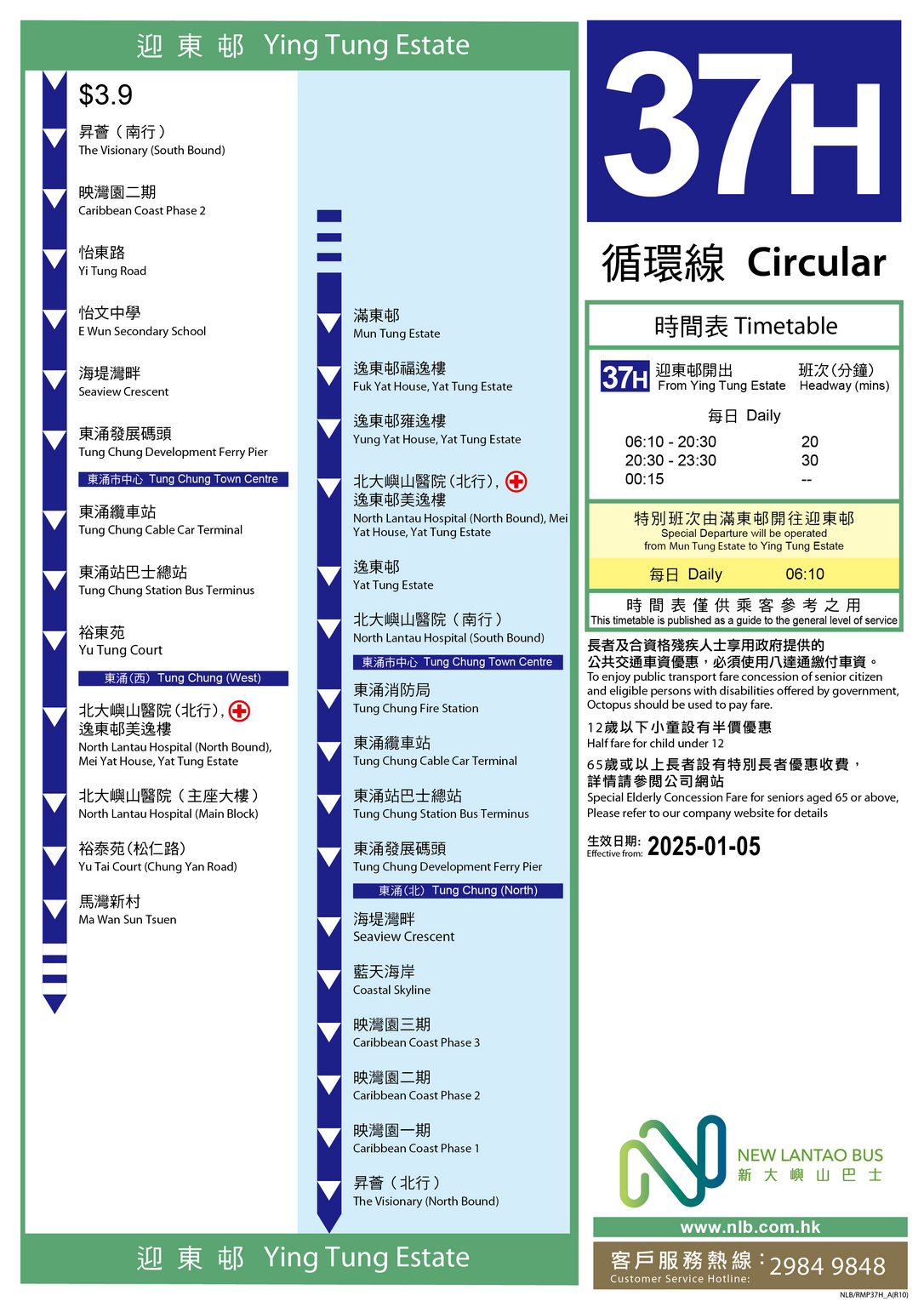 37H 迎東邨 > 北大嶼山醫院 (循環線)